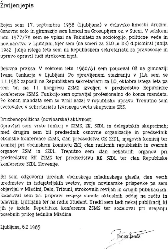 "1. Kdaj ste podpisali pristopnico za delo v zločinski politični policiji Zveze komunistov UDBI?