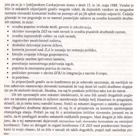Komunistična partija Slovenije je zlorabila svobodoljubna in narodna čustva za izvedbo revolucije in polastitve oblasti. Izhajajoč iz zgodovinskih dejstev in iz analize ter priporočil Resolucije 1096 parlamentarne skupščine Sveta Evrope (1996) 5. kongres SDS ugotavlja: