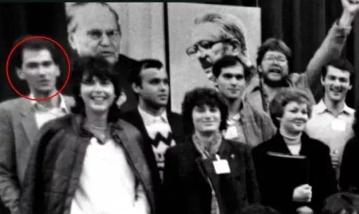 Bavčar in Janša na kongresu ZSMS (Zveza socialistične mladine Slovenije) leta 1982, Vir: svetovni splet
