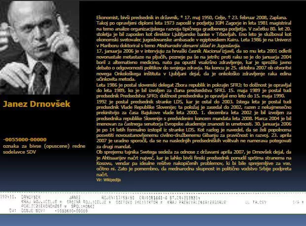 Za tiste, ki ne vedo, kako je delovala: tajna politična policija, znana kot UDBA v okviru nekdanje Jugoslavije in kasneje kot SDV v Sloveniji, je bila ključni instrument komunističnega režima za nadzor, represijo in zbiranje informacij o državljanih. Po ocenah strokovnjakov je bilo v Sloveniji v poznih 80-ih in zgodnjih 90-ih uničenih ali odtujenih preko 80 % arhivskega gradiva SDV. To se je zgodilo v obdobju navideznih političnih sprememb, ko je Jugoslavija razpadala, Slovenija pa se je pripravljala na osamosvojitev.